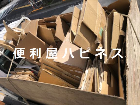 流山市ダンボール、梱包材、不用品同時回収いたしました。不用品専門業者なら不要なごみを早く綺麗に安心解決!流山市ダンボール引取りなら便利屋ハピネスにお任せください。