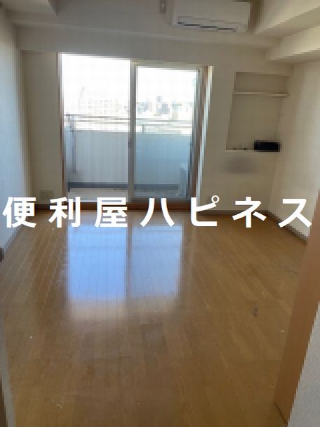 主な片付け品目:セミダブルベッド一式、3人掛け座椅子ソファー、布団毛布タオル、カーテン、絨毯、ワードローブ、本棚、チェスト、ガラステーブル、PCデスク、オフィスチェア、シュレッダー、冷蔵庫、洗濯機、テレビ、パソコン、メタルラック、ハンガーラック、突っ張り収納、衣装ケース、観葉植物、スタンド照明、鏡台、食器ガラス陶器類、ガスボンベ、ロウソク、電池100個、蛍光灯、ベランダタイル、キャンプ用品一式、生ごみ、期限切れ缶詰め、ビン詰め食品など。