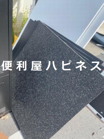 30分かけて搬出作業、トレーニングマットジムマット処理安心解決!トレーニング用品、フロアマット、各種廃品ごみ撤去なら便利屋ハピネスにお任せください。