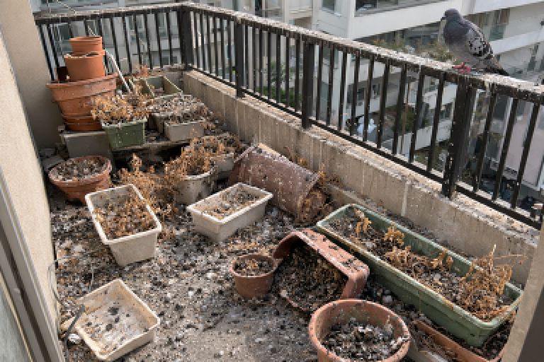 東京都鳩ふんベランダ清掃|プランター植木鉢撤去クリーニング